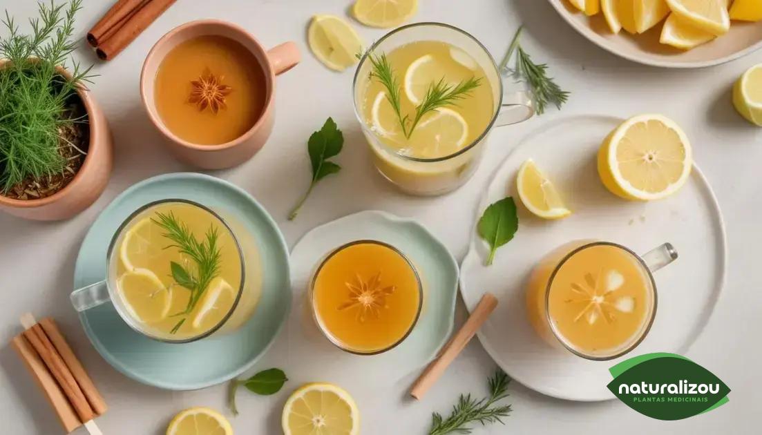 O chá de erva-doce pode ser usado em limonadas, lattes cremosos, picolés saudáveis e xaropes para coquetéis e sobremesas, explorando seu sabor único.