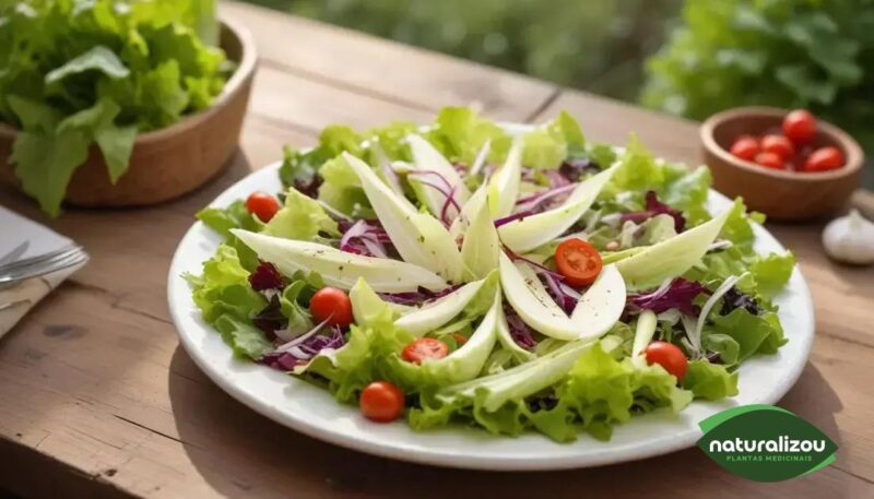 As endívias são ricas em fibras, vitaminas K, C e folato, além de antioxidantes, e são baixas em calorias, contribuindo para a saúde digestiva e geral.