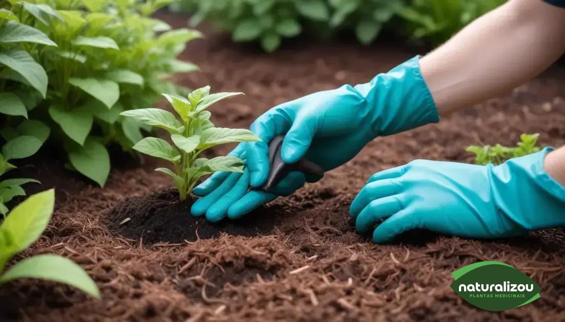 A cobertura morta, feita com materiais orgânicos como palha, folhas secas ou casca de árvores, é uma grande aliada na manutenção do seu espaço verde. Ela ajuda a reter a umidade do solo, reduz a evaporação, controla o crescimento de ervas daninhas e nutre o solo à medida que se decompõe. Espalhe uma camada de cobertura morta ao redor das plantas, mantendo uma distância do caule para evitar o apodrecimento.