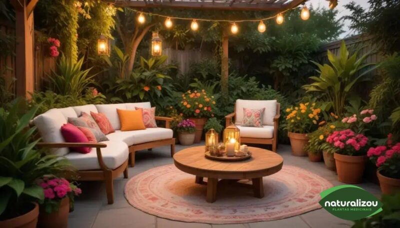 - Mobiliário confortável e funcional: Escolha móveis que sejam adequados para o uso ao ar livre, resistentes às intempéries e que ofereçam conforto. Sofás, poltronas, cadeiras, mesas de centro e laterais em materiais como madeira tratada, fibra sintética, alumínio ou rattan são ótimas opções. Almofadas e mantas em tecidos impermeáveis e coloridos dão um toque de aconchego e personalidade.