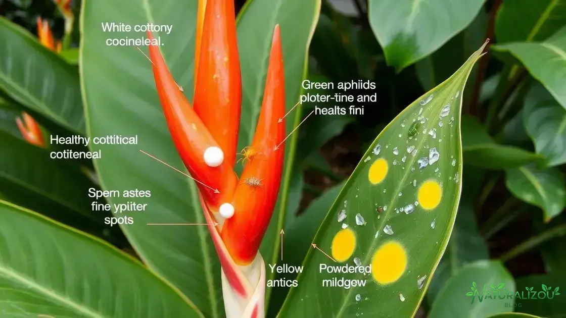 Quanto a doenças, o ídio é comum em Strelitzias, reconhecido por um pó branco nas folhas. O fungo da podridão radicular surge em solos encharcados, causando murcha e queda das folhas.