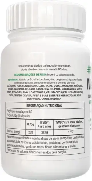 - Ingredientes de Qualidade: Formulado com vitamina E na forma natural, proporcionando melhor absorção e eficácia.