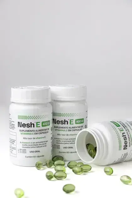 A Vitamina E Nesh oferece proteção celular, melhora a saúde da pele e fortalece o sistema imunológico.